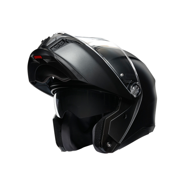 Ideal for those who do not want to give up the feeling of freedom but want to enjoy high degree of safety. The fibreglass and carbon fibre as well as its compact, protective shape ensure excellent protection fulfilling the AGV Extreme Standards while the degree of comfort provided by Dry-Comfort inner components is based on anatomical studies. An important new item is the wide, long visor with a new magnetic VMS closing system which, with its inner sun visor, ensures excellent vision regardless of weather and light conditions.